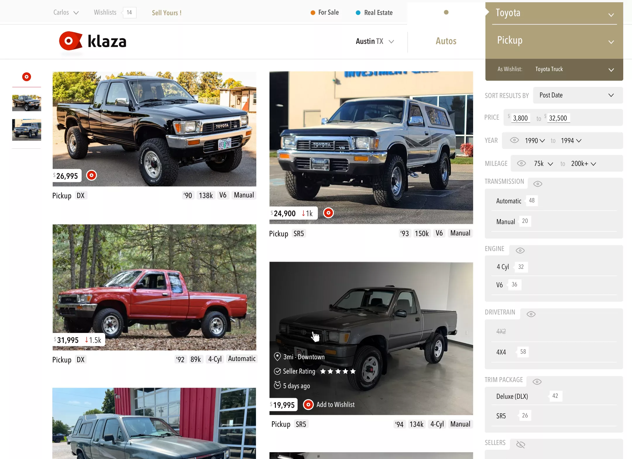 An Autos search with the default listing details displayed