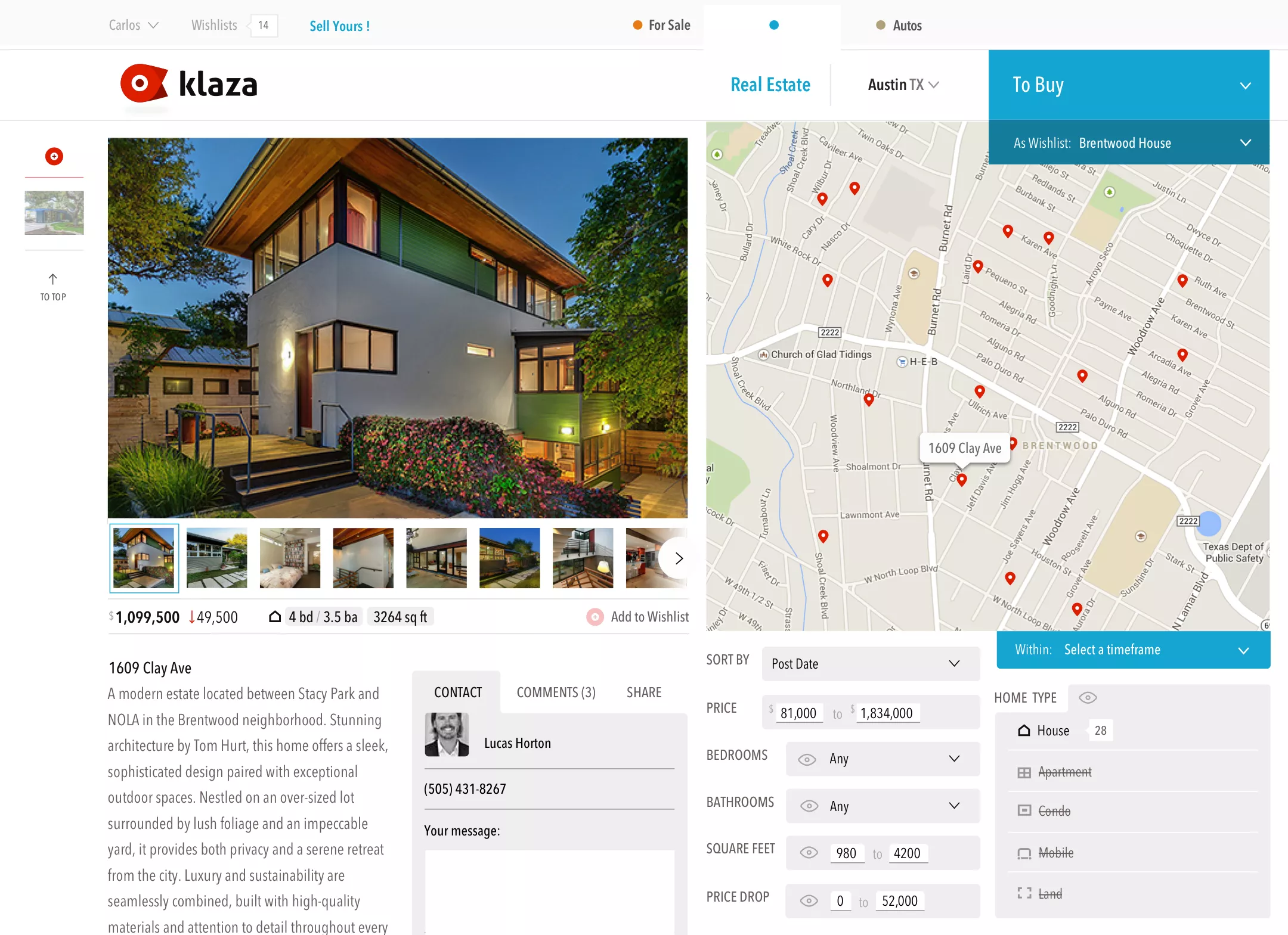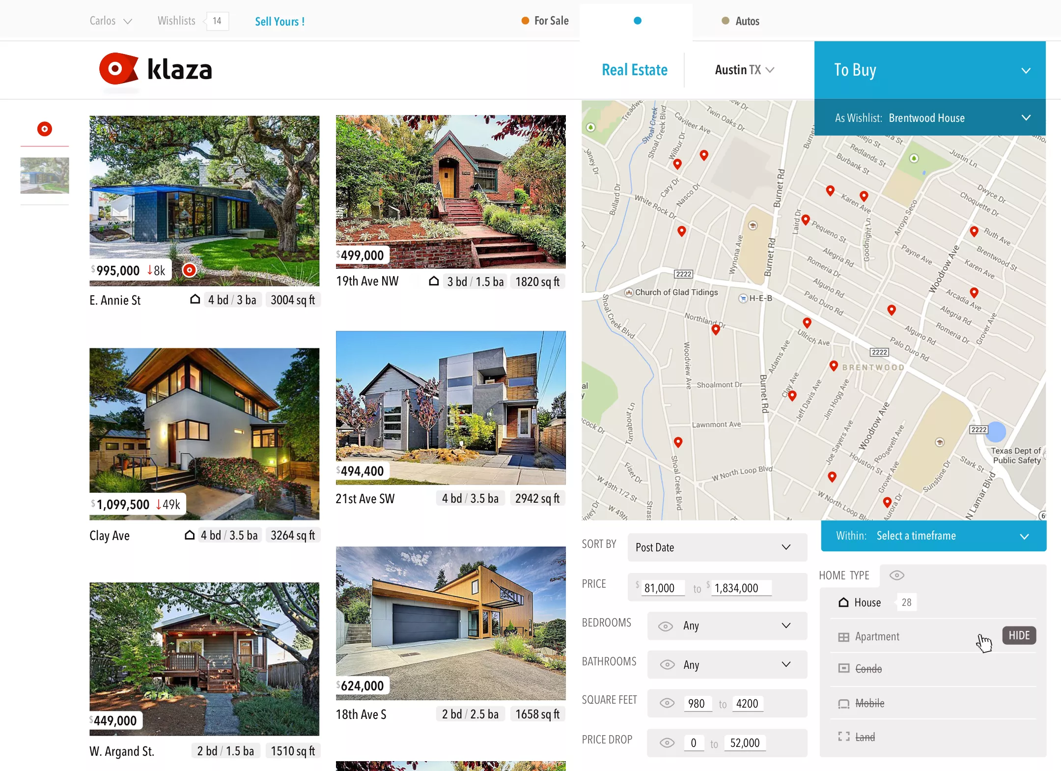Real Estate searches pair the filters with a map for more dynamic results