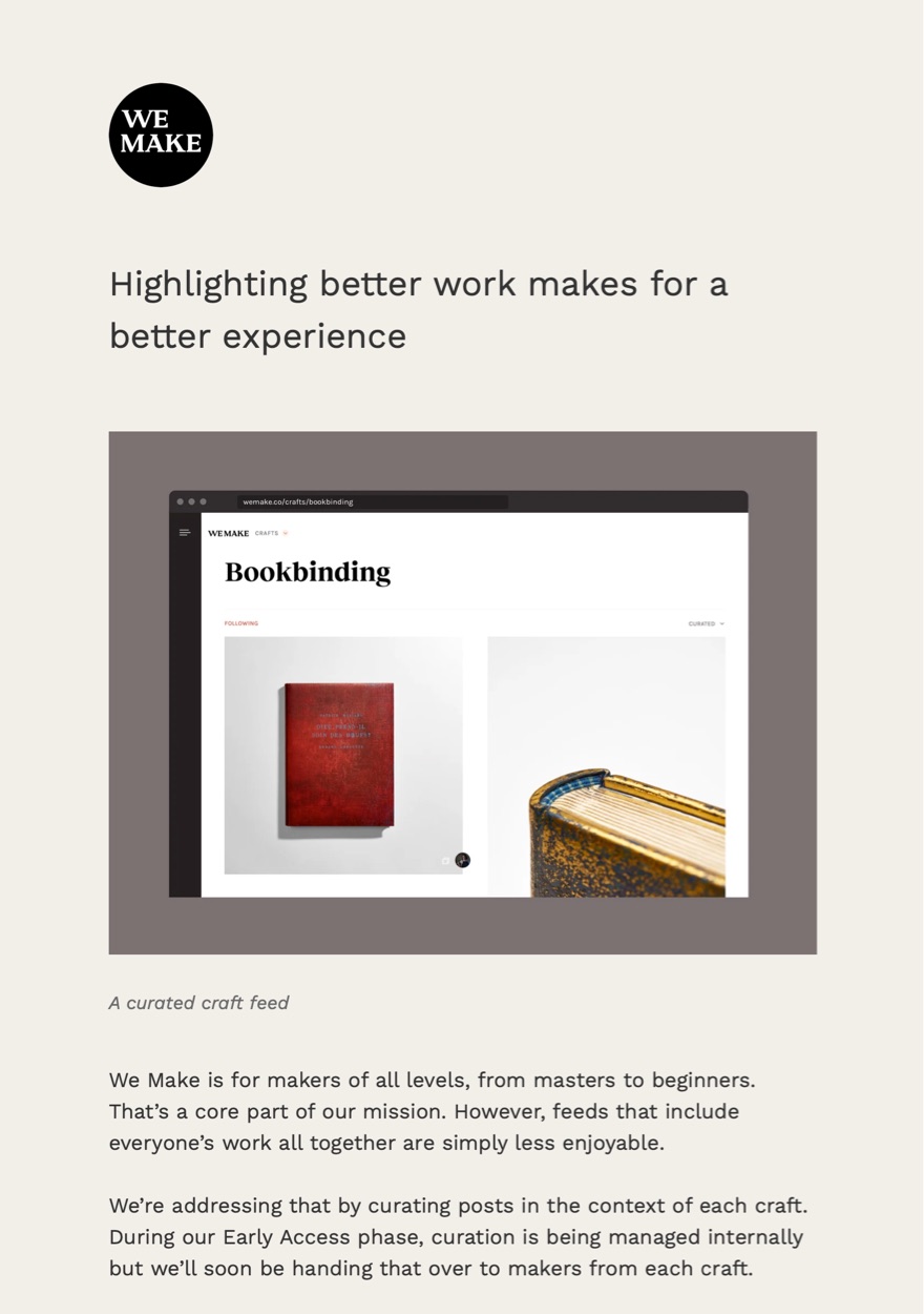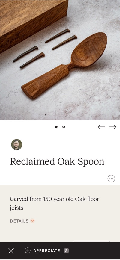 Your home feed displays the work of every maker you follow plus curated posts from your favorite crafts